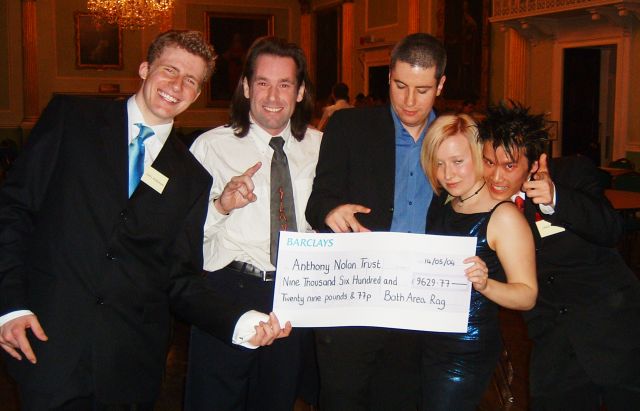 Toby, Slayer, Scott, Helen and Chiok showing off the cheque to Anthony Nolan from Rag Tour.