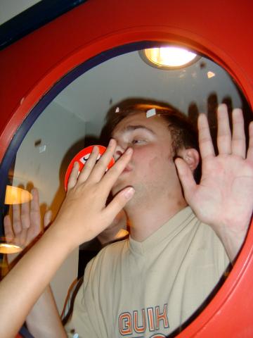 Rich squashed up against the window in the door.