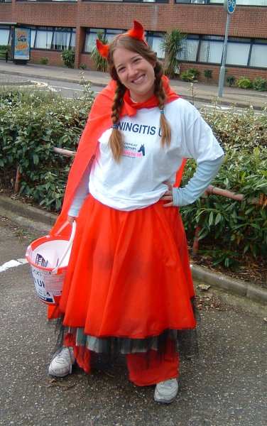 Photos > 2005 > Meningitis UK Summer Tour > Roo as a cross between Little Red Riding Hood and the Devil