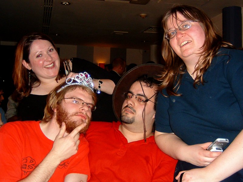 Lorna, Big Dave, Husey and Lesley lounging on one of the sofas in Harry's Bar.