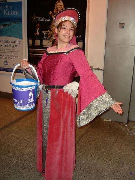 Theresa collecting at Waterloo Station.