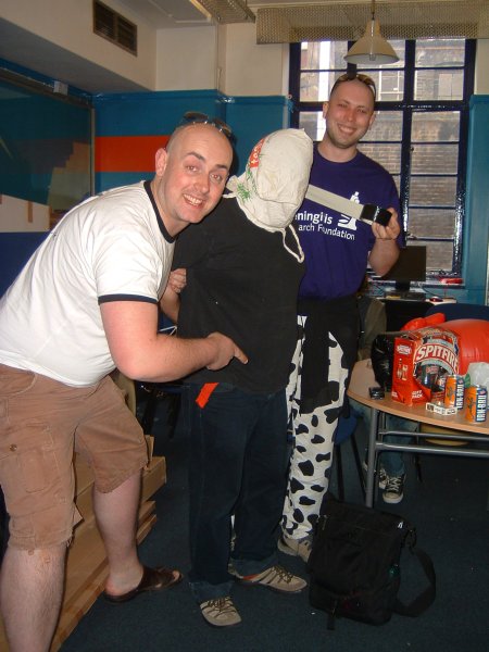Tigger pokes fun at the prisoner, whilst Benny prepares the gaffer tape.